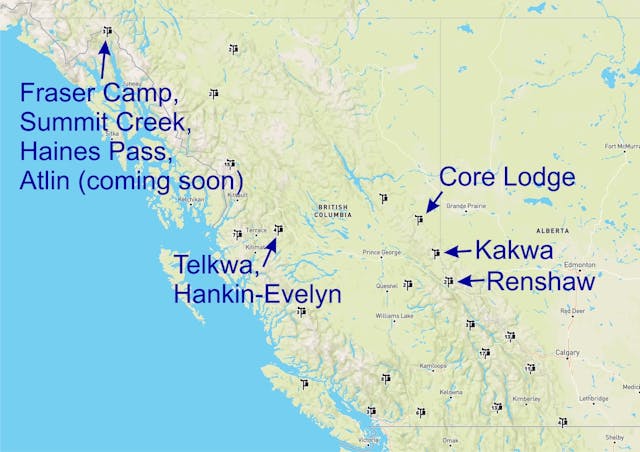 We recently installed weather stations at Renshaw, Core Lodge, and Telkwa for the 2022-23 season, as well as repairing one in Kakwa.